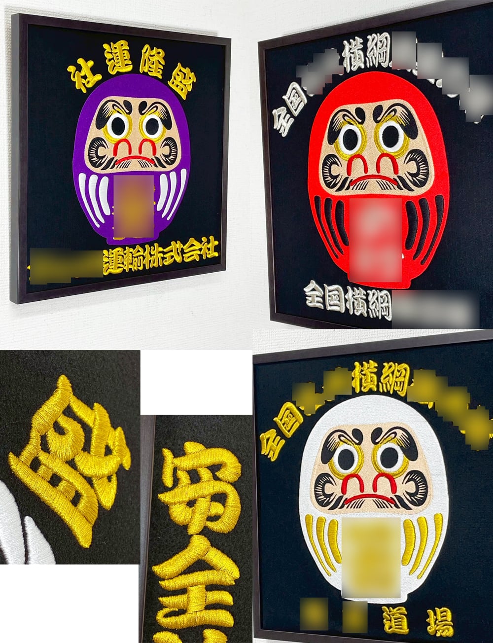 今期の目標や祈願などを、(縁起だるま)と一緒に刺繍し